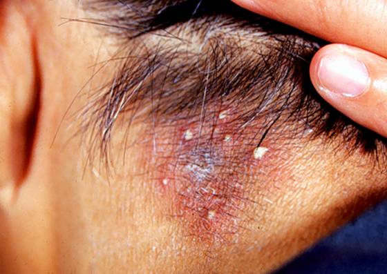2.初起为粟粒大红色毛囊性丘疹,顶端化脓形成小脓疱,大多分批出现,互不融合,自觉痒痛。脓疱破裂后可排出少量脓血,但无脓栓。易复发。