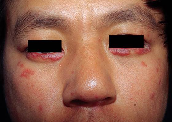 1.皮损好发于眼睑、颊部及鼻附近。