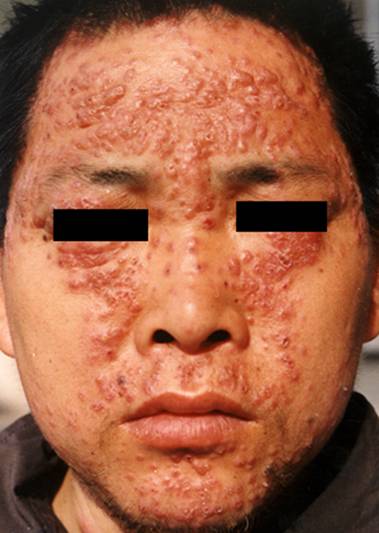 颜面播散性粟粒性狼疮(lupus miliaris disseminatus faciei)是否属于结核菌感染尚有争议。有人认为即为聚合性痤疮。