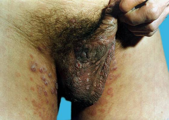 2.粘膜可见粘膜斑,肛周、外生殖器附近可发生增殖性的隆起性扁平丘疹,表面湿润,称扁平湿疣,内含大量梅毒螺旋体。