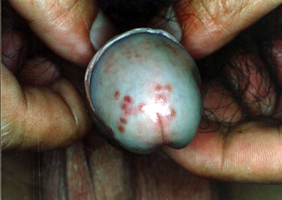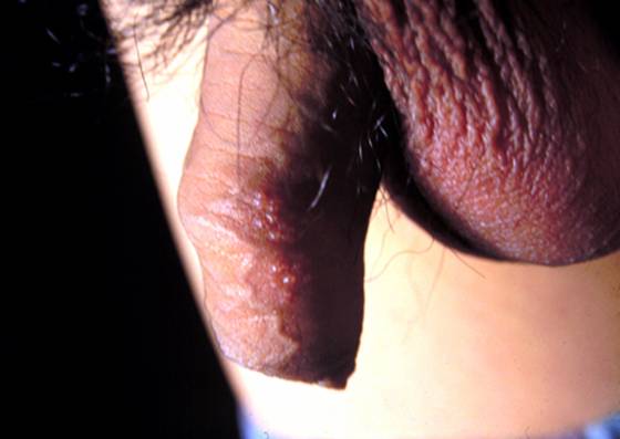 2. 损害好发于男性的阴茎、龟头或肛周,女性的阴唇、阴道和宫颈;