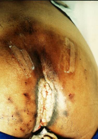 皮肤阿米巴病(amebiasis cutis)多继发于肠阿米巴病或阿米巴性肝脓肿,主要发生于肛门及会阴部。