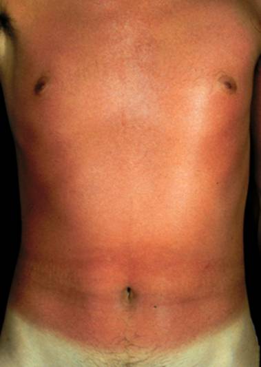 2.自觉烧灼感或刺痛。若日晒面积广时,可引起全身症状,如发热、畏寒、头痛、恶心、乏力甚或心悸、谵妄或休克。