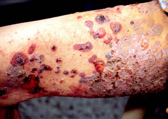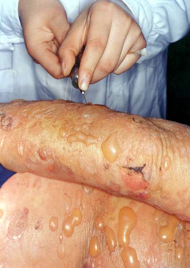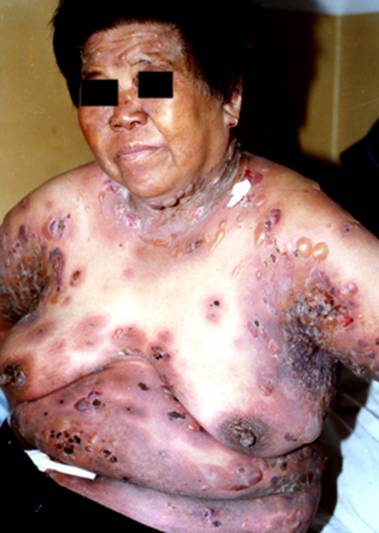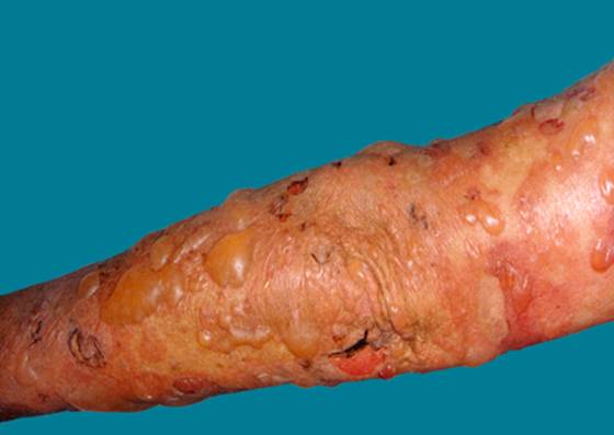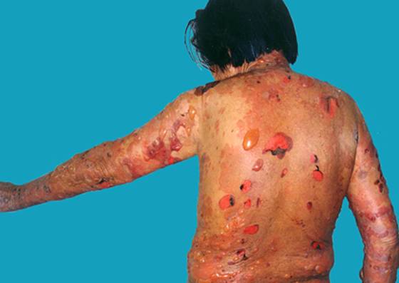 2.早期损害为浮肿性红斑,易误诊为多形红斑或药疹。