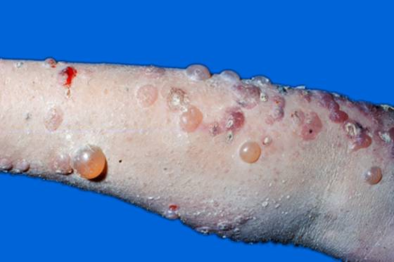 大疱性类天疱疮(bullous pemphigoid)为多见于老年人的自身免疫性疾病。
