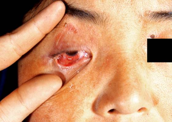 2.主要侵犯眼睛、咽喉、食道及尿道和阴道粘膜。在眼球结膜上发生水疱,容易破溃,出血,糜烂,愈后形成疤痕,反复发作,会造成严重视力障碍。
