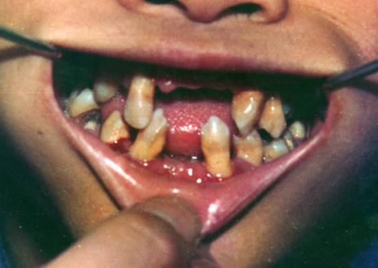 3.皮肤改变之同时患儿发生牙周病。
