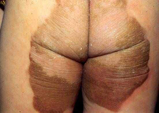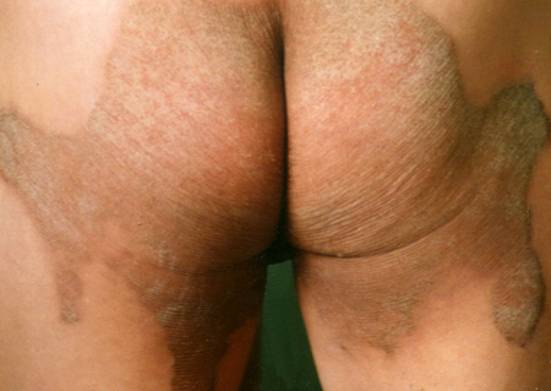 3.皮损可发于任何部位,以四肢伸侧、臀部和面部为多见,常伴发掌跖角皮症。