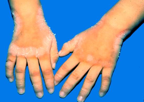 可变性红斑角皮病(erythrokeratodermia variabilis),又名可变性圆形红斑角皮症、对称性进行性先天性红斑角皮症或进行性红斑角皮症。