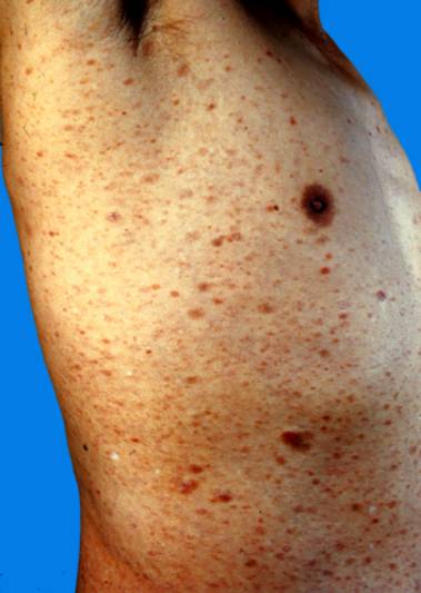 2.皮损好发于躯干、四肢屈侧和腋窝。