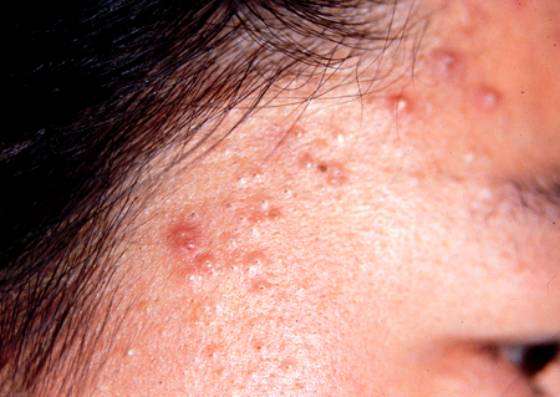 3. 常见皮疹有白头粉刺、黑头粉刺、炎性丘疹、脓疱。