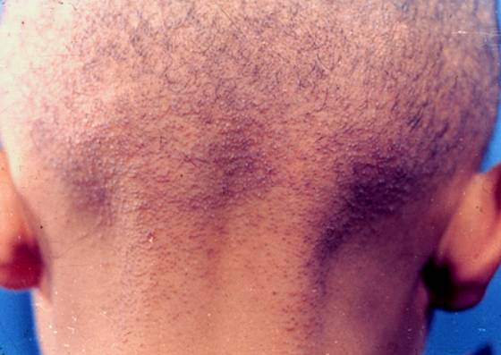 3.病发可局限于一处或弥漫全头部,头发稀少,干枯,易断。