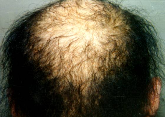 2. 毛干中段自然成结节状或扭曲成环,毛干中段开裂,末梢分叉。