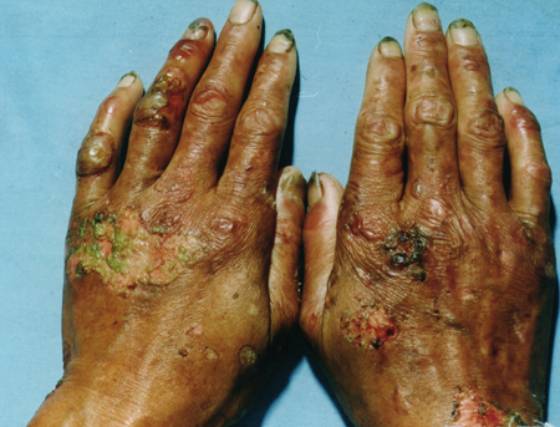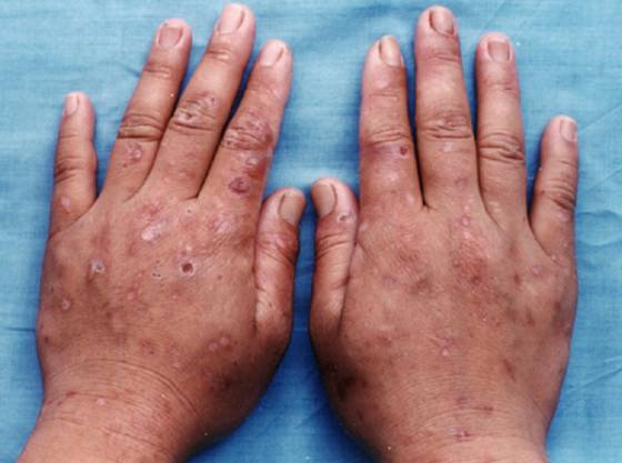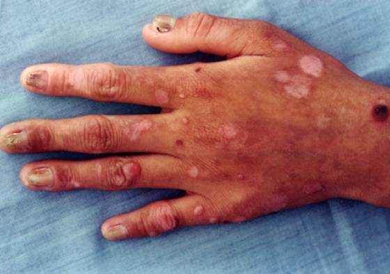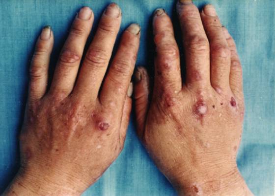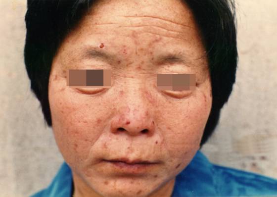 2. 皮损多发生于手、颜面、颈、胸背上部及小腿足部等暴露部位。