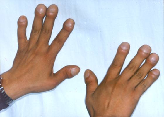 3. 指、趾尖逐渐增大,最后形成鼓锤状。