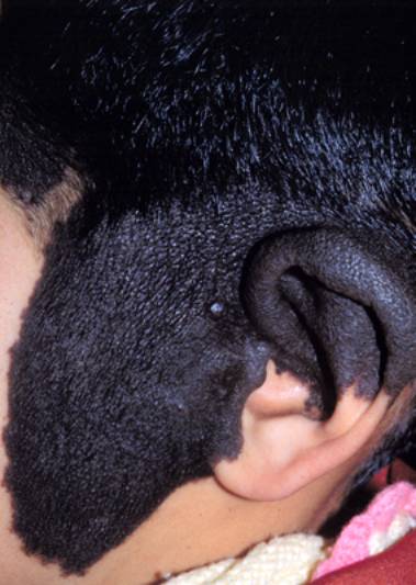 对位于头面部等暴露部位的色痣可手术切除。大的先天性色痣有癌变迹象时应手术切除。