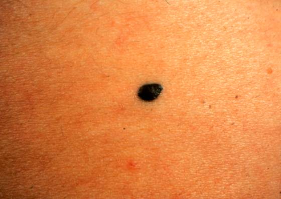 2.细胞型蓝痣为蓝黑色较大结节,常发于臀部和骶尾部,出生时发病,较易发生恶变。