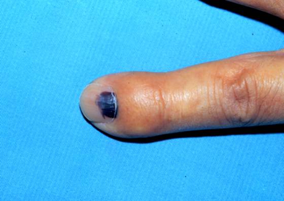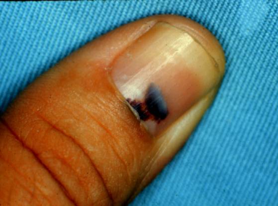 甲下出血(subungual hemorrhage)指各种原因引起的甲板下出血,多有外伤史。