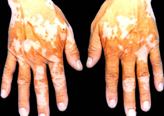 白癜风(vitiligo)常见,病因可能与自身免疫、遗传、神经调节等因素有关。