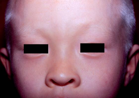 2.双瞳孔粉红色,虹膜粉红色,易畏光流泪。