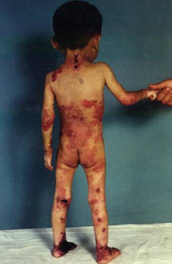 2.口腔及食道粘膜可受累,但较轻,一般不严重影响生长发育。