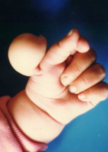 1. 出生时在手侧缘有一结节状或指状增生物,其中可有软骨,可呈蒂状或疣状。