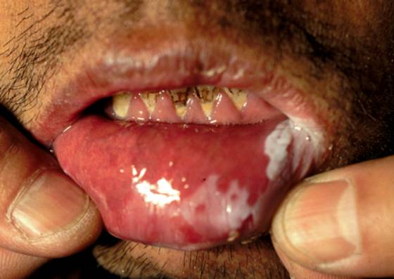 2.典型损害为不规则斑片,表面舌乳头消失,呈亮红色,病变处较正常舌面稍凹陷,境界清楚,形似地图。