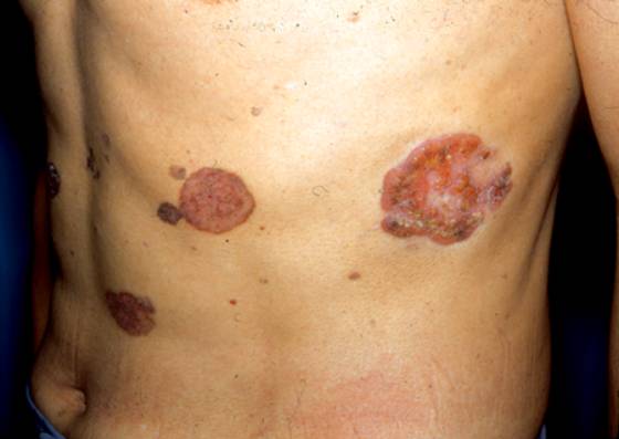 7.部分多发者可由于长期接触砷剂引起,图6, 亦可合并内脏肿瘤。
