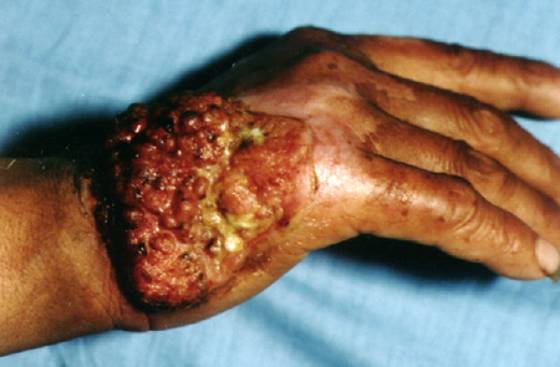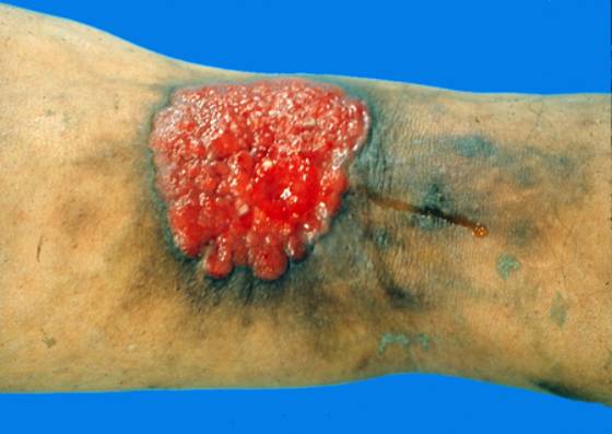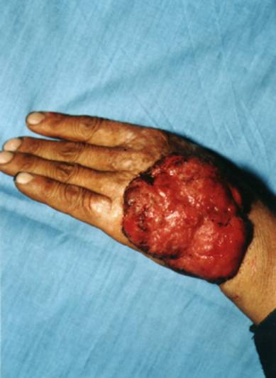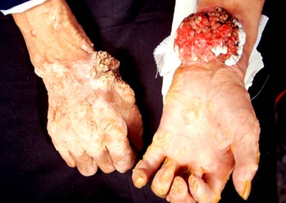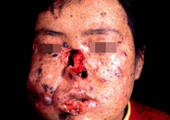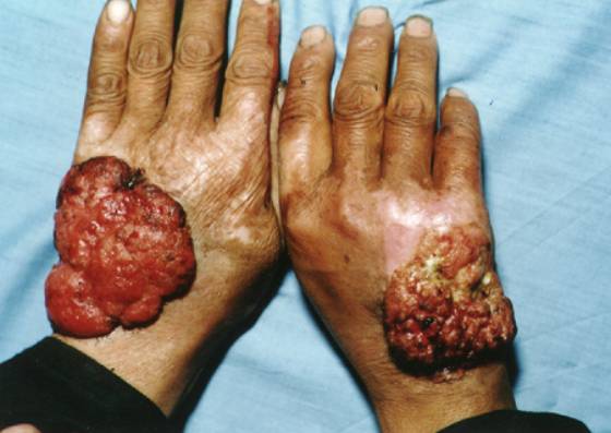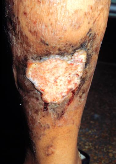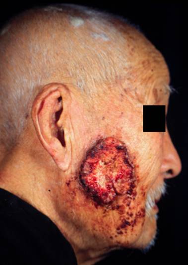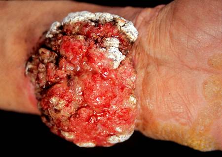 3.常继发于疤痕、慢性溃疡、慢性放射性皮炎及日光角化等原有皮损基础上。