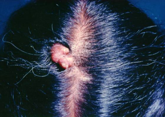 毛鞘瘤(trichilemmoma)又名外毛根鞘瘤,可能是一种向富有糖原的外毛根鞘细胞分化的良性上皮瘤。
