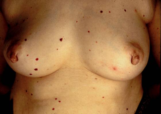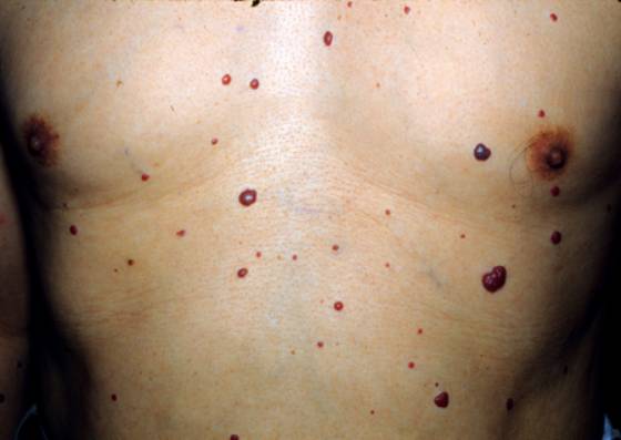 老年性血管瘤(senile angiomas)又称樱桃样血管瘤(cherry angiomas),是成年及老年人的一种常见病。