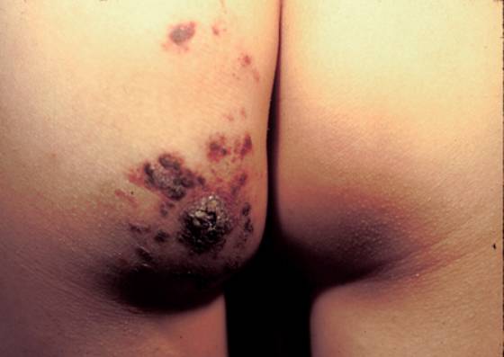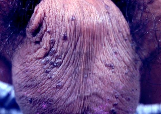 血管角皮瘤(angiokeratoma)分为肢端型、阴囊型、丘疹型、界限型和泛发型五型。