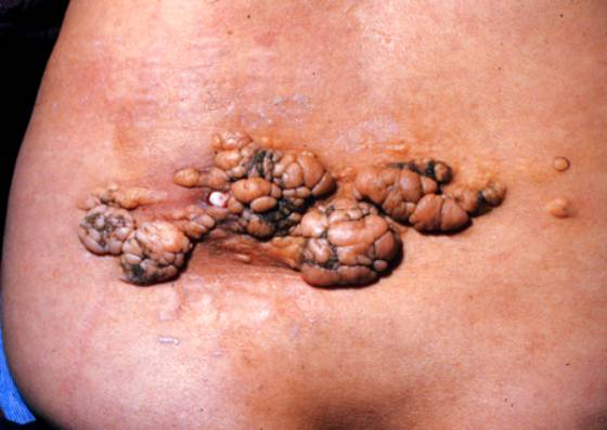 2.皮损为正常肤色或淡黄色丘疹或结节,质地柔软,簇集成片,界限清楚,表面光滑或有皱褶。无症状。可伴发痣细胞痣。