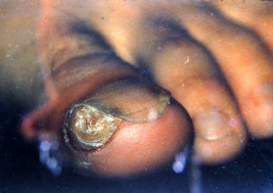 1.女性多见。多发生于甲床特别是拇趾甲缘下。