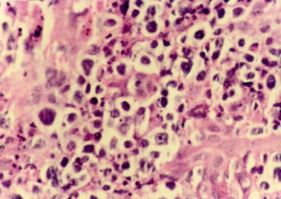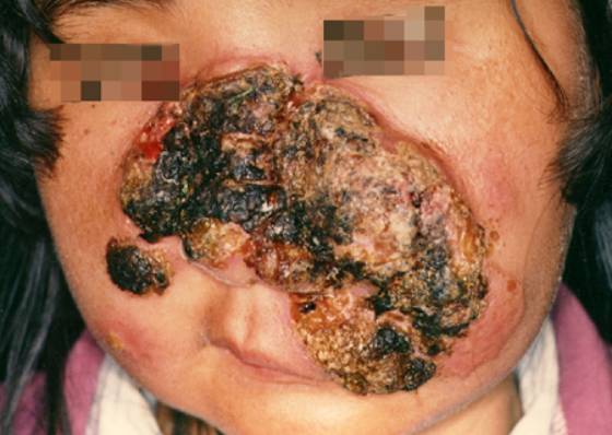 2. 浸润性结节、斑块,常有溃疡、坏死。