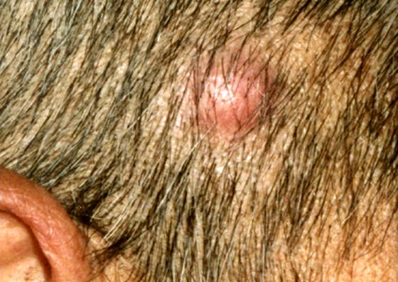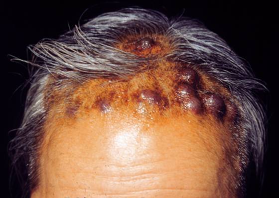 5. 黑色或红色结节,主要见于恶性黑素瘤转移。